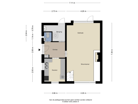Via de entree aan de zijkant van de woning wordt de hal bereikt. De hal biedt plaats aan de meterkast en het toilet. De centrale hal geeft toegang tot alle vertrekken op de begane grond. Zo kan de keuken, woonkamer en bijkeuken bereikt worden via de hal. In de bijkeuken vindt u de cv-installatie en de toegang tot de tuin.