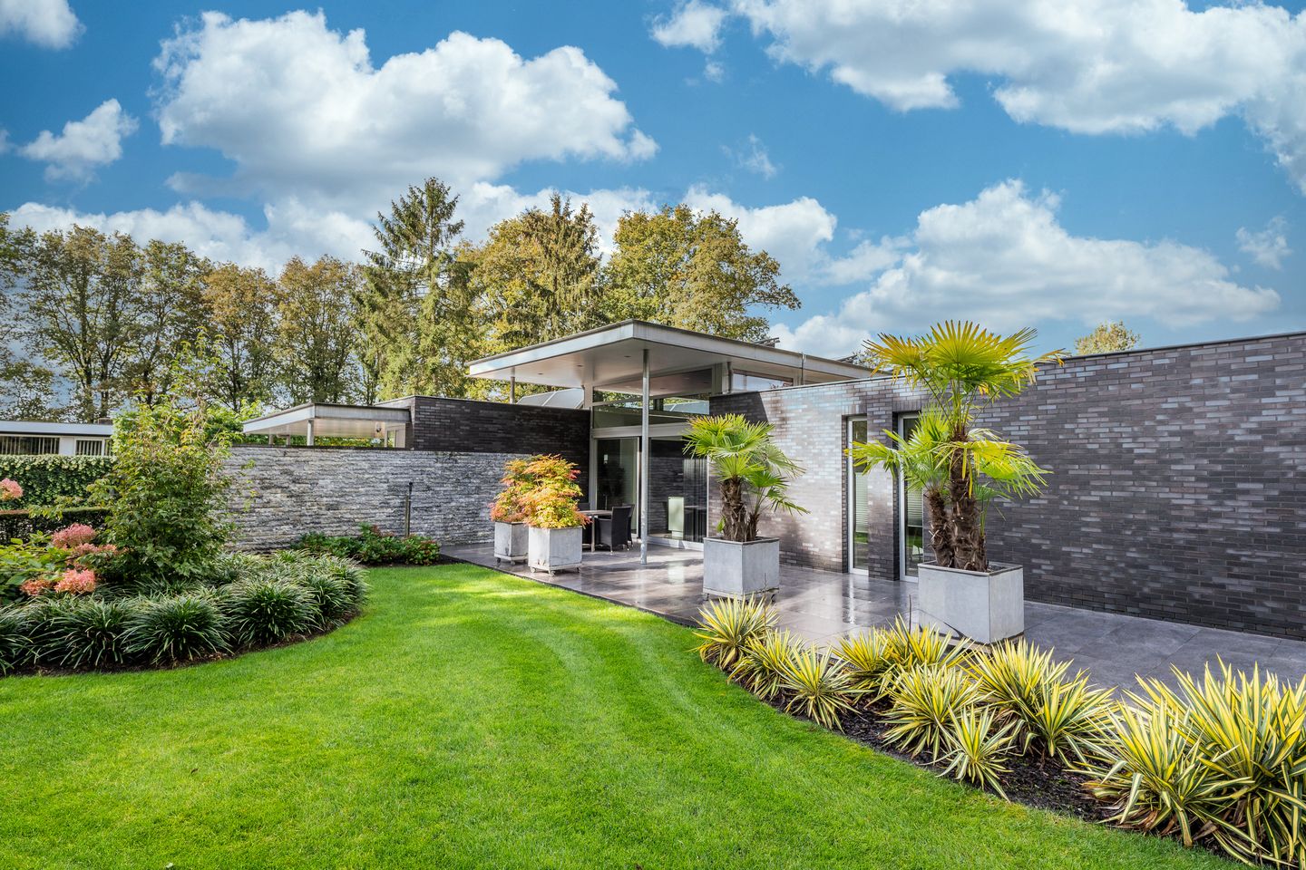 De buitenruimte van deze bungalow is net zo indrukwekkend als het interieur. Een ruim overdekt terras, compleet met inbouwspots, terrasverwarmers, tv-aansluiting, een open haard en glazen schuifwand, biedt de perfecte plek om het hele jaar door te genieten van het buitenleven. Voorbij het terras vindt u een prachtig aangelegde zwemvijver met natuurlijk waterfiltersysteem en vlonderterras. De tuin biedt volop gazon, volwassen borders en bomen, waarbij volledige privacy gewaarborgd is.