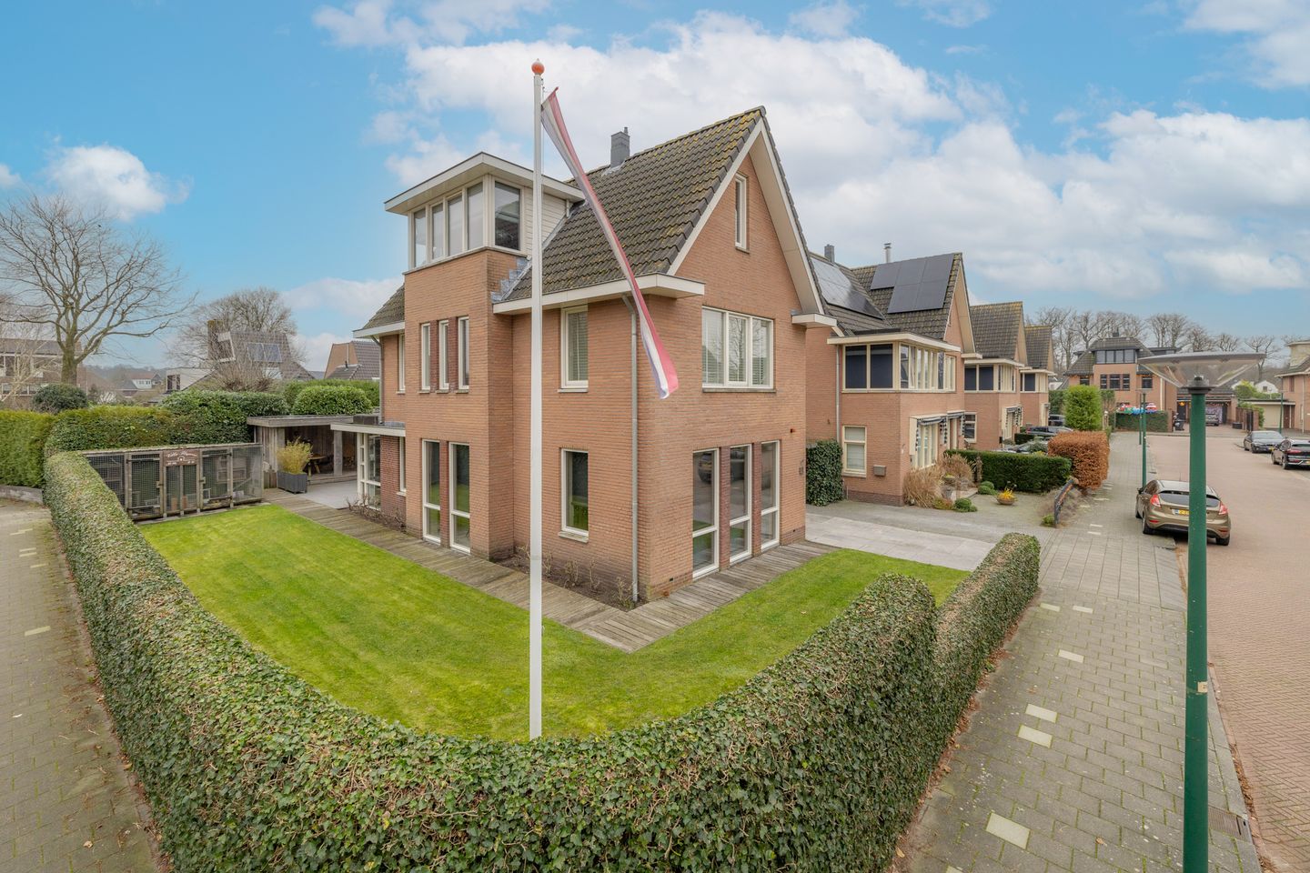 Deze villa is gelegen op een ruim perceel eigen grond van 396 m² en is voorzien van een ruime oprit voor meerdere auto’s met eigen elektrische laadpaal. De woning heeft een zonnige voor-, zij- en achtertuin welke is voorzien van een garage, een schuur, verlichting en een fraaie ruime tuinhut.