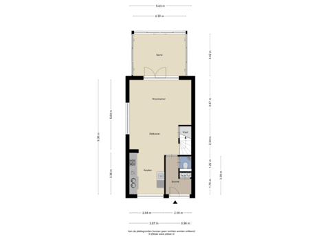 Via de voortuin bereikt u de hal met toilet, meterkast en trapopgang. De woonkamer is licht en uitnodigend dankzij de grote ramen en biedt een comfortabele zitruimte met direct zicht op de tuin.
