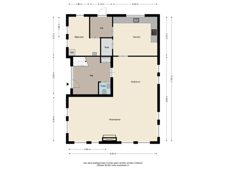 - 128 m² (11.70 metre deep and 10.90 metre wide)