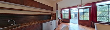 De doorzon woonkamer is zeer ruim door de uitbouw aan de achterzijde en heeft openslaande deuren naar de achtertuin. De open keuken heeft enige inbouwapparatuur en een gedateerd keukenblok. Deze ruimte is perfect voor het creëren van een sfeervolle eetkeuken. De begane grond verdieping is geheel voorzien van een massief houten vloer.