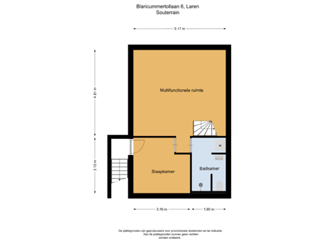 In het souterrain bevinden zich een multifunctionele ruimte, welke gebruikt kan worden als bijvoorbeeld speelkamer of bioscoop, alsmede een ruime slaapkamer en badkamer. De badkamer is voorzien van wastafel, inloopdouche en watercloset. Tevens bevinden zich hier de aansluitingen voor de wasmachine en -droger. Het souterrain is bereikbaar vanuit de ontvangsthal, maar ook middels een separate ingang aan de achterzijde van de villa. Kortom, dit souterrain is ook ideaal voor inwonende (oudere) kinderen of een au-pair.