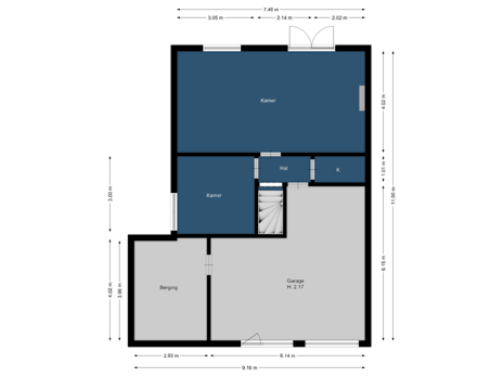 - Dubbele inpandige garage/berging (ca. 43 m²)