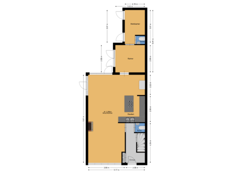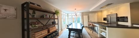 Achter de keuken ligt een extra kamer die momenteel is ingericht als zitgedeelte, ideaal als tweede lounge, speelruimte of tv-kamer. Vanuit hier bereik je de werkkamer, een rustige plek om te werken, eveneens voorzien van een modern afgewerkt toilet.