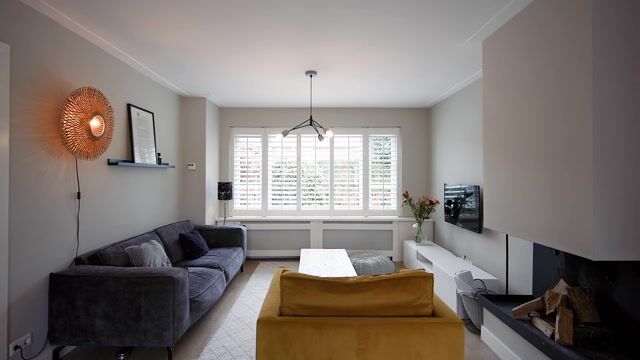 Achter de keuken ligt een extra kamer die momenteel is ingericht als zitgedeelte, ideaal als tweede lounge, speelruimte of tv-kamer. Vanuit hier bereik je de werkkamer, een rustige plek om te werken, eveneens voorzien van een modern afgewerkt toilet.