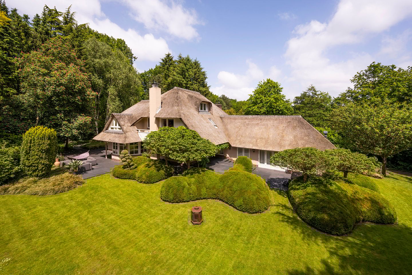 The detached thatched villa, built in 1980, enjoys a serene and favorable location on a plot of 4,500 square meters. It's just a short bike ride away from the lively village center of Laren, known as "de Brink," with its annual ice rink, Art on the Brink, the pancake stand, shops, restaurants, and the "Singer" theater/museum. Schools, heathlands, and major roads (A1 and A27) to Utrecht and Amsterdam are also easily accessible.