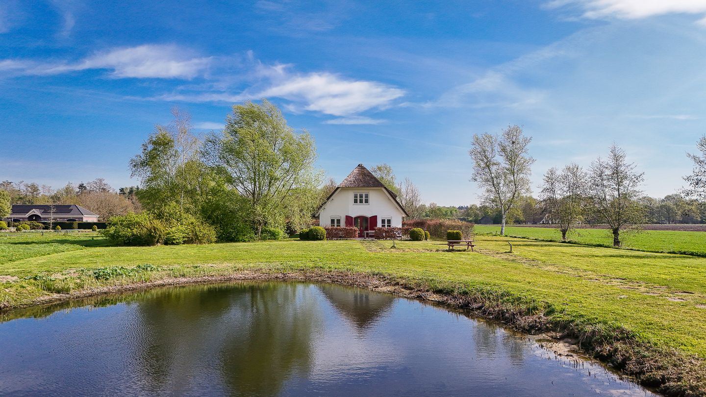 De Schaapskooi ligt aan een grote waterpartij, omringd door weids groen en zichtlijnen tot ver in het landschap. Hier hoor je ganzen overvliegen, zie je je (klein)kinderen spelen in het gras, en ruik je het bos na een zomerse regenbui. Dit is wonen in vrijheid — met de natuur letterlijk voor de deur.