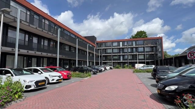 Je parkeert hier de auto makkelijk, ideaal na een lange dag. Via de nette gezamenlijke entree met lift stap je zo naar de verdieping waar het appartement zich bevindt. De galerij ligt niet voor dit appartement langs, waardoor je meteen merkt hoe rustig en privé het hier is.