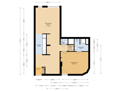 Aan de rustige straat valt de karakteristieke gevel direct op: hoge ramen, robuuste lijnen en dat typische pakhuisgevoel. Via de gezamenlijke entree stap je het gebouw binnen, waarna je bijna direct jouw appartement bereikt. Fijn voor iedereen die gelijkvloers wil wonen en niet te ver wil lopen.