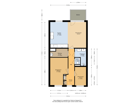 Het appartement is gelegen op de eerste verdieping. Via de entree kom je in de hal die toegang biedt tot alle ruimtes. Zo zijn aan binnentuinzijde de twee slaapkamers gelegen. Aan de rechterzijde eerst het toilet en vervolgens de naastgelegen de badkamer. De badkamer is voorzien van twee wastafels en een inloopdouche. Aan de linkerzijde de berging, waar ook de installaties zoals de warmtepomp geïnstalleerd zijn en waar plek is voor het witgoed.