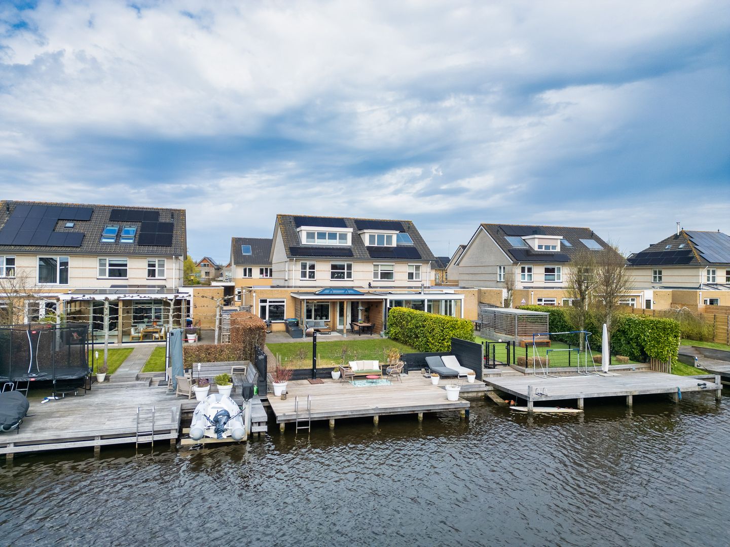 Hier begin je de dag met een kop koffie aan het water, gooi je ’s middags een hengel uit of stap je zo op je supboard. Met een boot vaar je direct weg richting het open water en de grachten van Leeuwarden. En in de winter verandert het geheel soms in een natuurlijke ijsbaan, waar je zo vanuit je achtertuin het ijs opstapt.