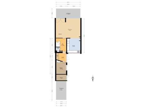 Binnenkomst via de entree met garderoberuimte, meterkast en toegang tot twee separate bergingen aan de voorzijde — ideaal voor fietsen, voorraad of hobbyruimte. Via de tussenhal bereik je het toilet en de trap naar de verdieping.