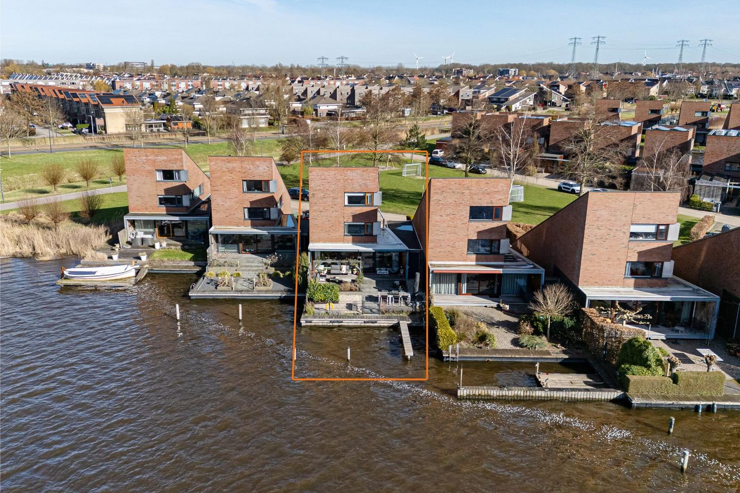 De achtertuin is zonder twijfel een van de mooiste plekken van deze woning. Zodra u naar buiten stapt, ervaart u direct de rust en de ruimte van het water. Het uitzicht is vrij en weids en verandert met de seizoenen en het licht van de dag.