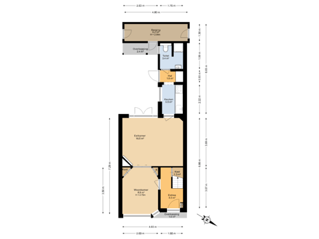 - 14 m² (5.70 metre deep and 4.80 metre wide)