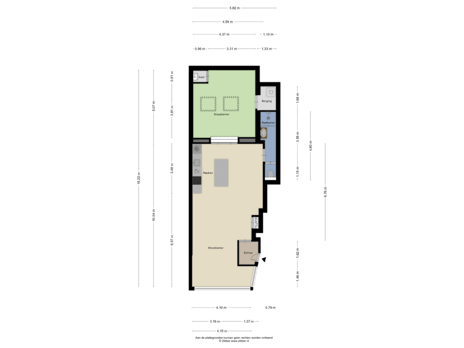 Through your own private entrance at street level, you enter the vestibule (approx. 1.61 x 1.40 m). The spacious living room with bay window and open kitchen (approx. 42 m²) offers plenty of light and space – perfect for relaxing evenings or cozy dinners with friends. At the rear, you’ll find the large bedroom (approx. 4.68 x 4.41 m) with direct access to a convenient storage room, which also houses the washing machine connection. A built-in closet contains the central heating boiler. The modern bathroom (approx. 3.56 x 1.11 m) is fitted with a walk-in shower, washbasin unit, and toilet.