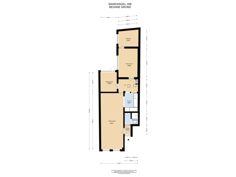 - 14 m² (6.10 metre deep and 2.45 metre wide)