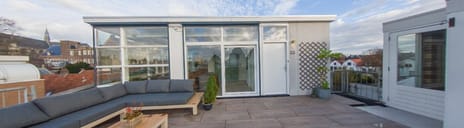 - Spacious private rooftop terrace of 81 m² facing south, offering sun all day long and a panoramic view of the impressive Hooglandse Kerk