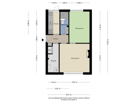 - 41 m² (7.50 metre deep and 5.50 metre wide)
