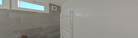 Overloop, aan de voorzijde van de woning 1 slaapkamer (ca. 4.09 x 3.03 m.) en aan de achterzijde 2 slaapkamers (ca. 3.91 x 3.03 m. en 3.51 x 1.99 m.), moderne in 2018 verbouwde badkamer, voorzien van inloopdouche met thermostaatkraan, hand en regendouche, douchescherm, tweede vrijdragende toilet en dubbele wastafel met meubel.