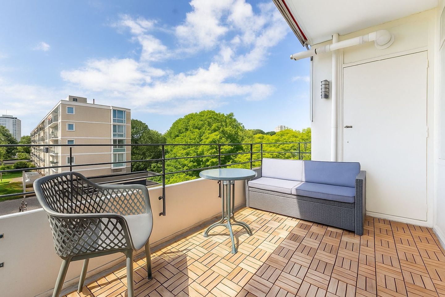 Through the draft portal you enter the hallway. From here you have access to the kitchen (gallery side), meter cupboard, bathroom, toilet, two bedrooms and the living room. The spacious kitchen is equipped with a five-burner gas stove with extractor hood, combination oven, dishwasher, fridge/freezer combination and the washing machine connection. The bathroom has a spacious walk-in shower, towel radiator and washbasin with cabinet. At the front is the living room, which receives plenty of light through the large windows. The living room and main bedroom give access to the spacious and sunny balcony (southwest-facing). The bedroom on the gallery side has two built-in closets, the main bedroom and living room each have one built-in closet.