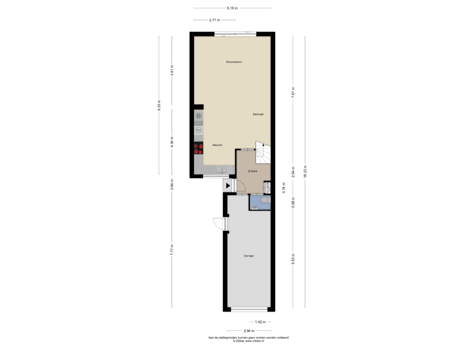 - 101 m² (19.30 metre deep and 5.25 metre wide)