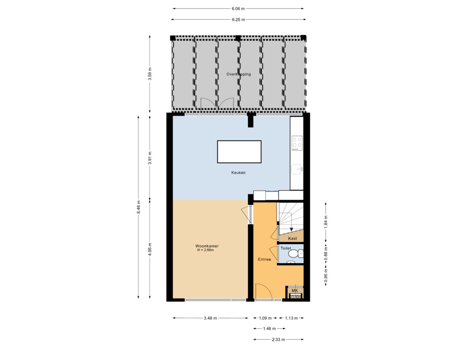 - 69 m² (11.00 metre deep and 6.26 metre wide)