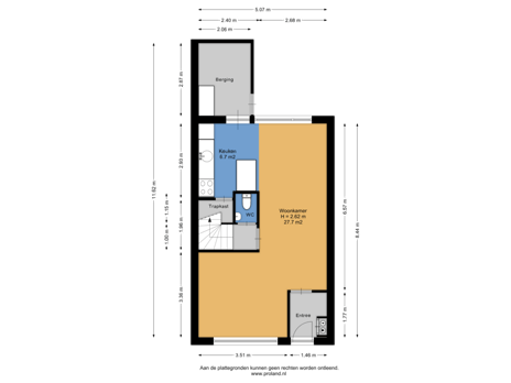 - 70 m² (13.50 metre deep and 5.15 metre wide)