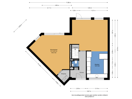 The entrance provides access to the hallway with a toilet, meter cupboard (3-phase), and the spacious living room.