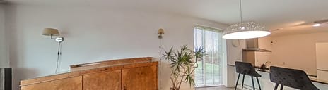 * Vanuit de woonkamer kijkt u heerlijk vrij weg dankzij de grote glazen pui en het extra zijraam