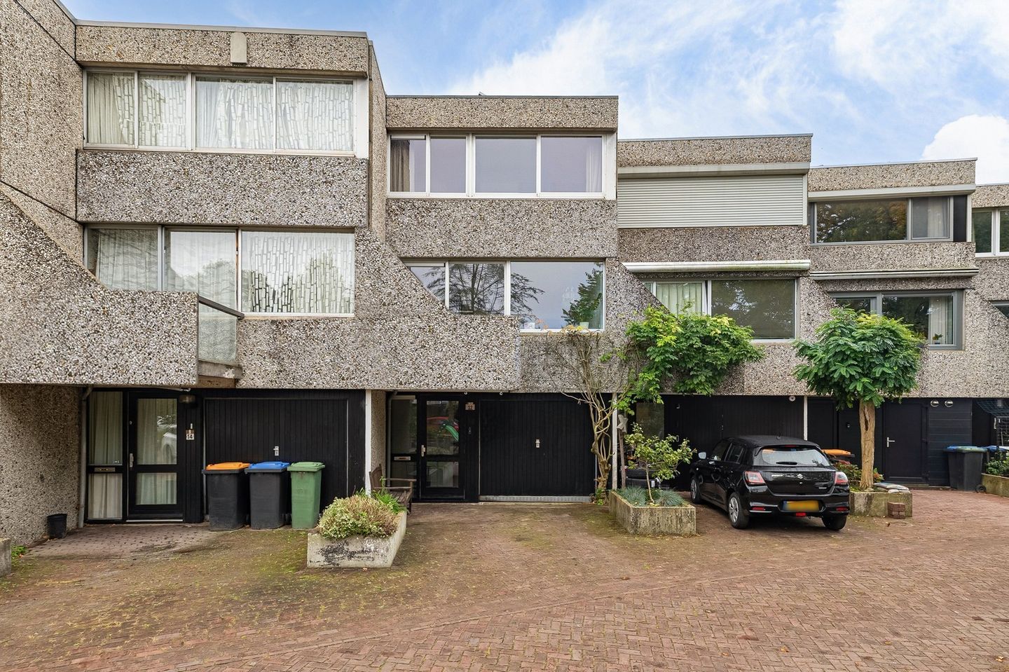 The southeast-facing backyard features a large terrace adjacent to the house and a sun terrace with a cozy sitting area in the middle. The garden is surrounded by greenery and hedges, ensuring privacy while you enjoy the outdoors. The property includes an integral garage with one parking space, and additional public parking is available nearby.