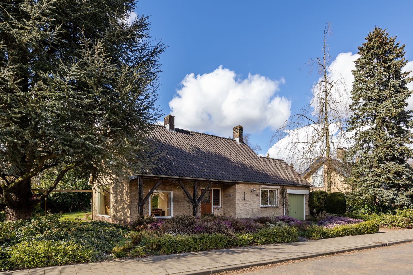Vanaf de straat valt het groene karakter van de woning meteen op, wat zorgt voor veel privacy en beschutting. De woning beschikt daarnaast over een eigen oprit, een garage, een berging en zelfs een extra werkkamer op de begane grond.
