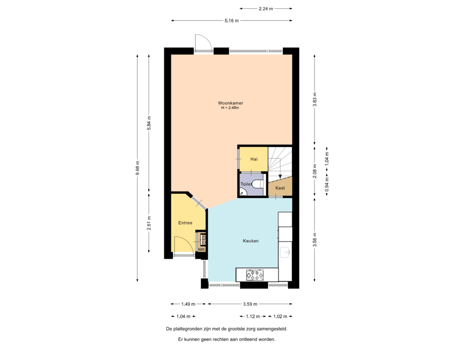 Entree met meterkast en garderobe. De ruime, lichte woonkamer heeft een fijne zithoek en openslaande deur naar de zonnige achtertuin. Via de tussenhal bereik je het moderne toilet met zwevend closet en fonteintje, en de trap naar de eerste verdieping. Aan de voorzijde vind je de royale woonkeuken – het hart van de woning. Deze keuken (2017) is uitgerust met een grote gaskookplaat met wokbrander, design afzuigkap, vaatwasser, koelkast, vriezer en combi-oven/magnetron. De gehele begane grond is afgewerkt met een pvc vloer in houtlook voorzien van vloerverwarming.