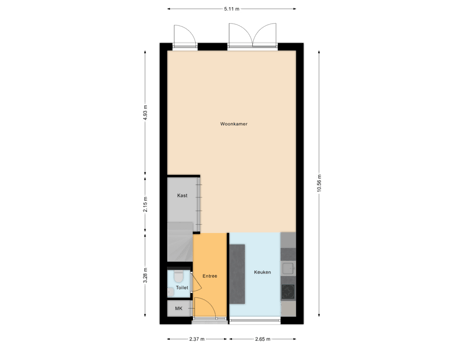 De fraaie voortuin biedt toegang tot de voordeur van deze volledig instapklare woning. Achter de voordeur vind je de hal/entree met de trap naar de eerste verdieping, meterkast, toilet met wandcloset, fontein en de toegang naar de woonkamer.