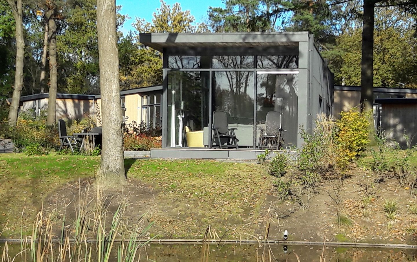 De hoogte van de woning en de overvloedige raampartijen zorgen voor een prachtige lichtinval. Geniet van het betoverende uitzicht op de vijver, bevolkt door sierlijke eendjes en verlevendigd door een dansende fontein. Dit is niet zomaar een recreatiewoning; dit is een ontsnapping naar een wereld van serene verfijning.