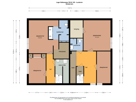 Via de eikenhouten trap in de hal daalt u af naar het souterrain met ruime overloop en vloerverwarming. Dankzij de koekoek in de leefruimtes is er prettig daglicht. Er zijn twee kamers: één in gebruik als thuiskantoor en een grotere ruimte met inloopkast, geschikt als slaapkamer, werkkamer of praktijkruimte. Dit niveau beschikt bovendien over een keurige badkamer met inloopdouche, toilet en wastafelmeubel. Het souterrain biedt opvallend veel extra leefruimte.