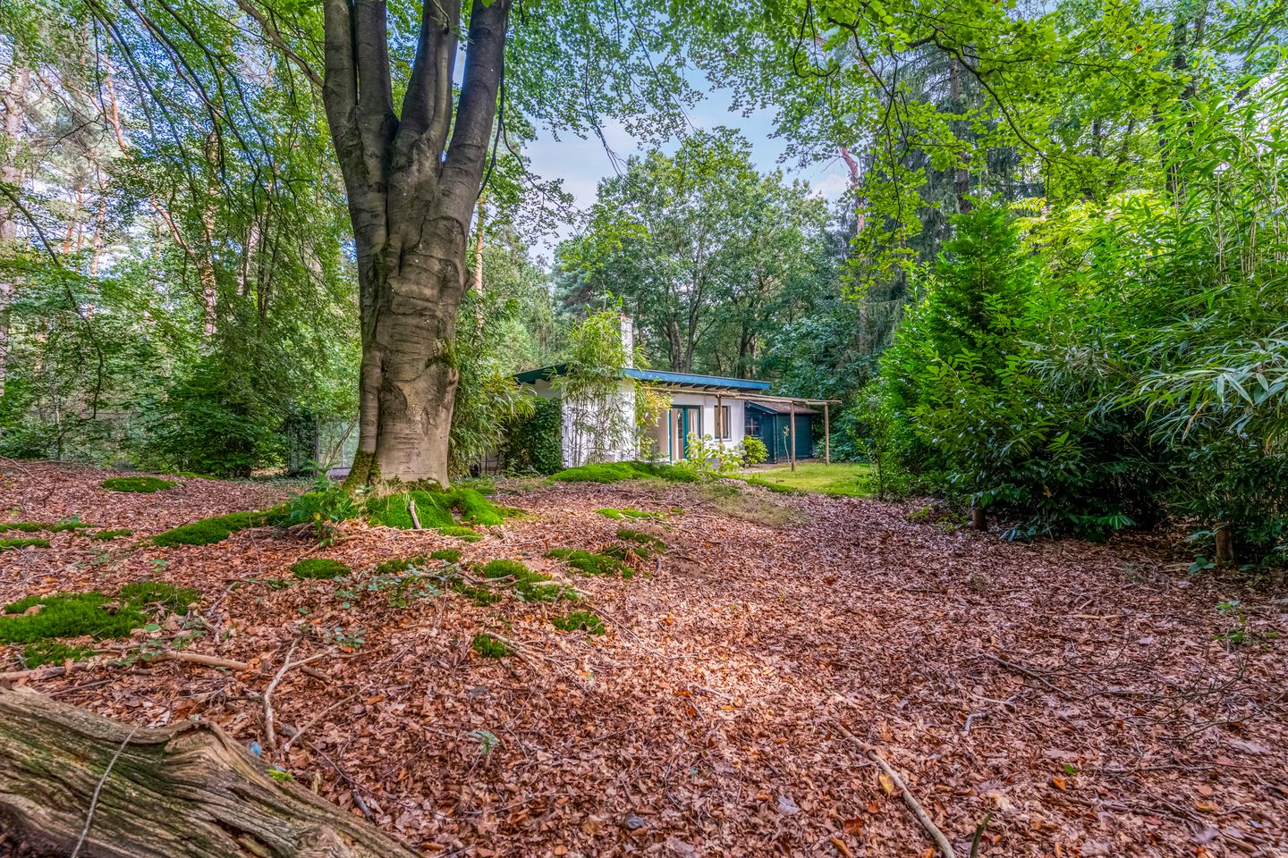 Omringd door groen, midden in de bossen van de Utrechtse Heuvelrug op een ruim perceel ligt deze lichte recreatiewoning.
