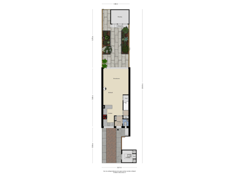 Tuin: de achtertuin ligt zonnig op het zuid-westen en is bijna 9 meter diep. Het elektrische zonnescherm aan de achtergevel biedt verkoeling op warme zomerdagen. Achter in de tuin staat een grote houten schuur met veel bergruimte. De tuin is achterom bereikbaar. In de voortuin bevindt zich de royale stenen (fietsen)berging en is er ruimte om de auto comfortabel op eigen terrein te parkeren.