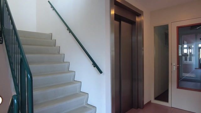 Via de lift of trap bereikt u de overdekte galerij met toegang tot het appartement.