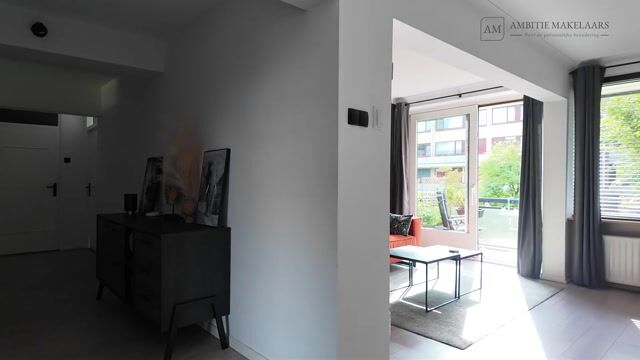De L-vormige woonkamer vormt het hart van de woning. Dankzij de hoekligging valt er vanuit drie richtingen royaal daglicht binnen. Dit creëert een open, lichte en aangename leefruimte, ideaal voor zowel een comfortabele zithoek als een ruime eethoek. Vanuit de woonkamer is bovendien het balkon toegankelijk.
