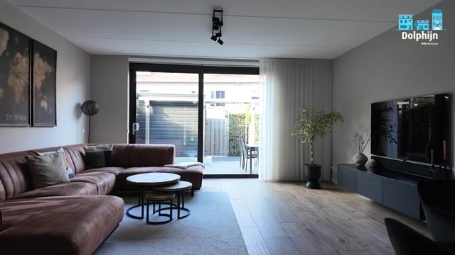 Entree, hal, luxe toiletruimte (hangend closet met fonteintje), meterkast, trapopgang en toegang tot de woonkamer. De heerlijk ruime en lichte woonkamer is voorzien van een plavuizen vloer in houtlook. De trapkast is ideaal voor extra voorraad. Door middel van de schuifpui is de achtertuin toegankelijk.