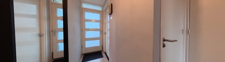 Via de nette voortuin bereik je de entree van de woning. In de hal vind je het toilet, de trapopgang naar de eerste verdieping en toegang tot de inpandige berging, die ook via buiten bereikbaar is. Deze praktische ruimte is voorzien van aansluitingen voor wasmachine en droger, en herbergt tevens de CV-combiketel (Vaillant EcoTec, 2021).