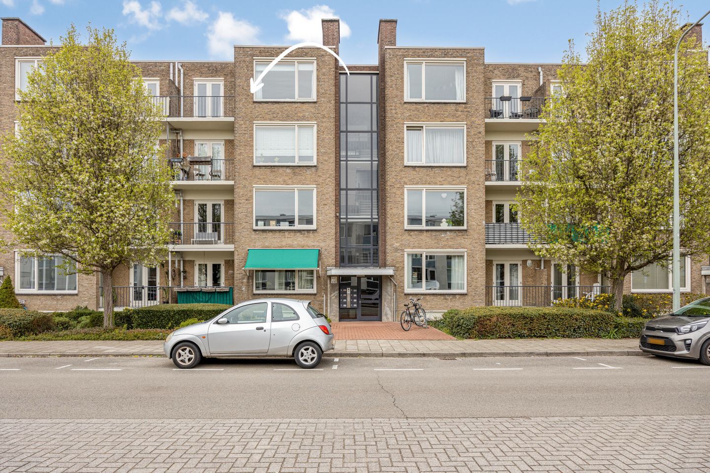 Het appartement is gelegen op de 4e woonlaag (bovenste!), te bereiken middels de trap. Vanuit de entree is er toegang tot diverse ruimtes van het appartement. De woonkamer, gelegen aan de voorzijde van het appartementencomplex, is ruim van opzet en kenmerkt zich door veel lichtinval, eveneens door de grote raampartijen en doordat het appartement gelegen is op de 4e verdieping. Geniet hier van veel privacy en de ruimte. Naast de woonkamer heb je de eetruimte, ook gelegen aan de voorzijde van het complex. Vanuit de woonkamer heb je toegang tot het balkon op het zuiden. De gesloten keuken bevindt zich aan de achterzijde van het complex. In de keukenruimte is de aansluiting voor het witgoed mogelijk te maken. In de keuken hangt de cv-ketel, eigendom 2020.