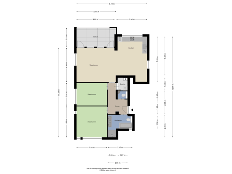 - Twee slaapkamers van respectievelijk bijna 16 m² en ruim 11 m².
