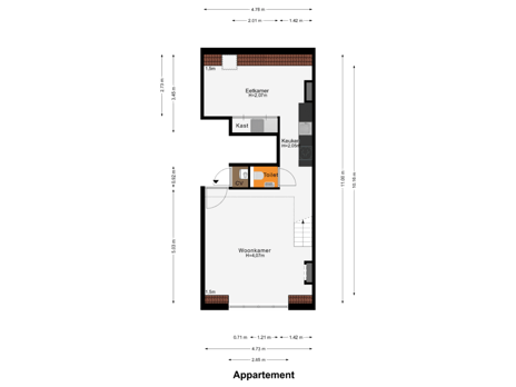 Gebruiksoppervlakte wonen: circa 54 m2, inhoud circa 188 m3