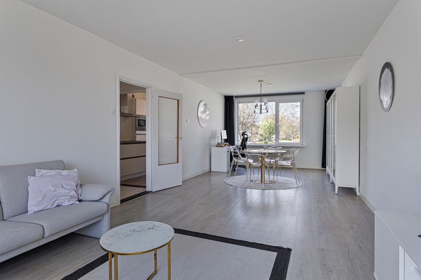 Met enkele traptreden omhoog bereiken we de voordeur van het appartement. Ruimtelijke entree/hal (ca. 5m²), met tegelvoer en toegang tot alle vertrekken. Sfeervolle en lichtovergoten doorzonwoonkamer (ca. 36m²), geheel voorzien van een lichte laminaatvloer, afgewerkt met hoge plinten. Aan de achterzijde bevindt zich het zitgedeelte, de eethoek is aan de straatzijde van het appartement is gelegen. De woonkamer geniet veel lichtinval vanwege de grote ramenpartijen. Gesloten keuken (ca. 9m²) voorzien van een luxe keukeninstallatie (2019) met boven- en onderkasten en de navolgende inbouwapparatuur: spoelbak, inductiekookplaat, RVS-afzuiginstallatie, vaatwasser, combi-oven en een koelkast met vriesvak. Het geheel is prachtig afgewerkt met een kunststof aanrechtblad. Vanuit de keuken is er toegang tot het balkon (ca. 2m²) aan de straatzijde, alwaar men heerlijk kan genieten van de groenvoorzieningen en alle rust dat deze prachtige woonomgeving te bieden heeft. Tevens is de bijkeuken (ca. 4m²) te bereiken, alwaar de aansluitpunten voor het witgoed zijn gerealiseerd, evenals de groepenkast (7 automatische groepen, 1 aardlekschakelaar) en de opstelling van de boiler (merk: Daalderob, 120L eigendom & bouwjaar 2021).