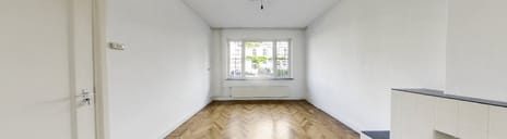 Aan de voorzijde is de woonkamer (circa 3,97 x 3,76) met een erker. Deze kamer is, bij volledige bewoning als woonhuis, heel geschikt als slaapkamer II. Slaapkamer III (circa 4,09 x 3,76) bevindt zich aan de achterzijde. In beide kamers ligt laminaat en bij de schouw in de kamer aan de achterzijde zijn de originele tegels behouden.