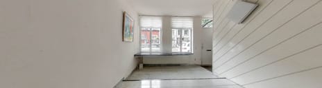 Achter de voordeur loopt u via een open portaal naar de multifunctionele ruimte (ca.34 m2) die dienst kan doen als winkelruimte, expositieruimte of woonruimte. Deze multifunctionele ruimte staat in open verbinding met de woonkeuken.
