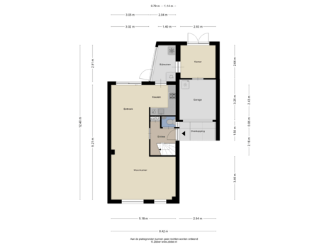 Via de bijkeuken is tevens de aangebouwde garage bereikbaar.