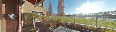 Het zonnige terras, gelegen op het zuidwesten, is een waar verlengstuk van de woonkamer. Hier geniet u elke dag van een prachtig uitzicht over het voorgelegen plantsoen en het Maas-Waalkanaal, waar regelmatig schepen voorbij varen. Door de verhoogde balustrade met glazen schermen zit u heerlijk beschut en geniet u van privacy en veiligheid — een ideale plek om te ontspannen, te lezen of te genieten van een kop koffie in de zon.